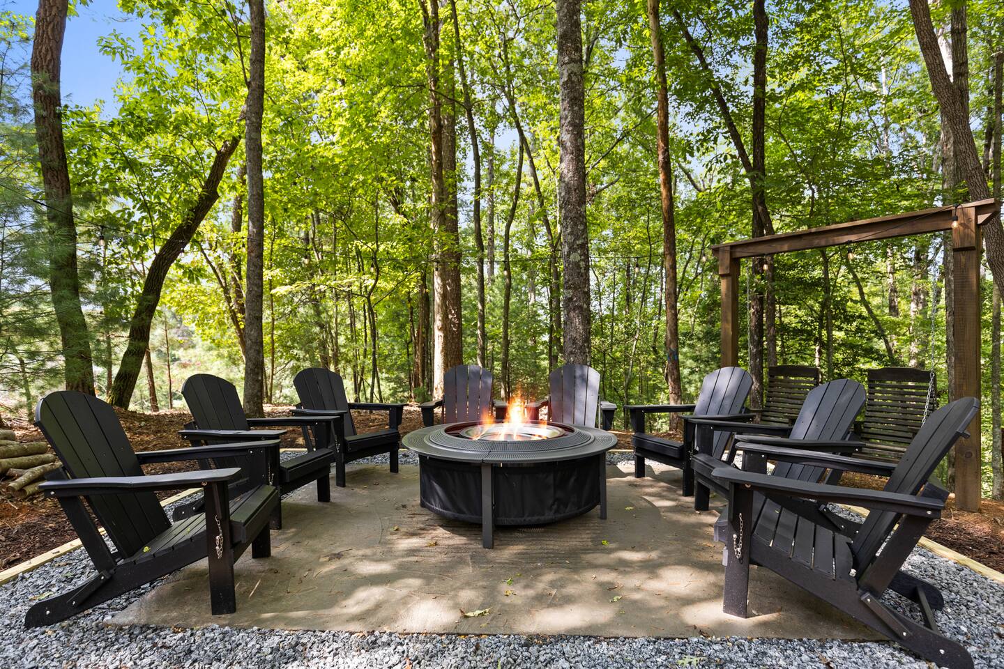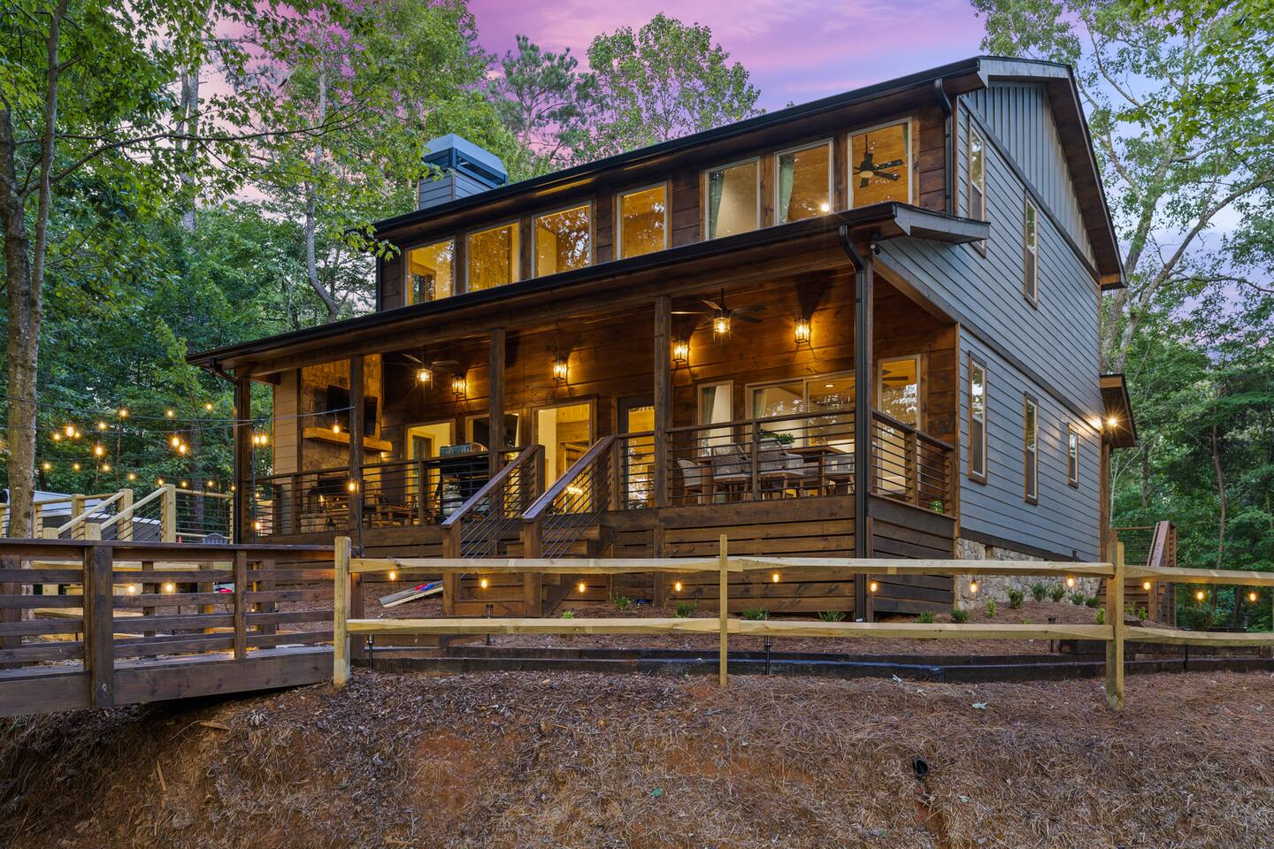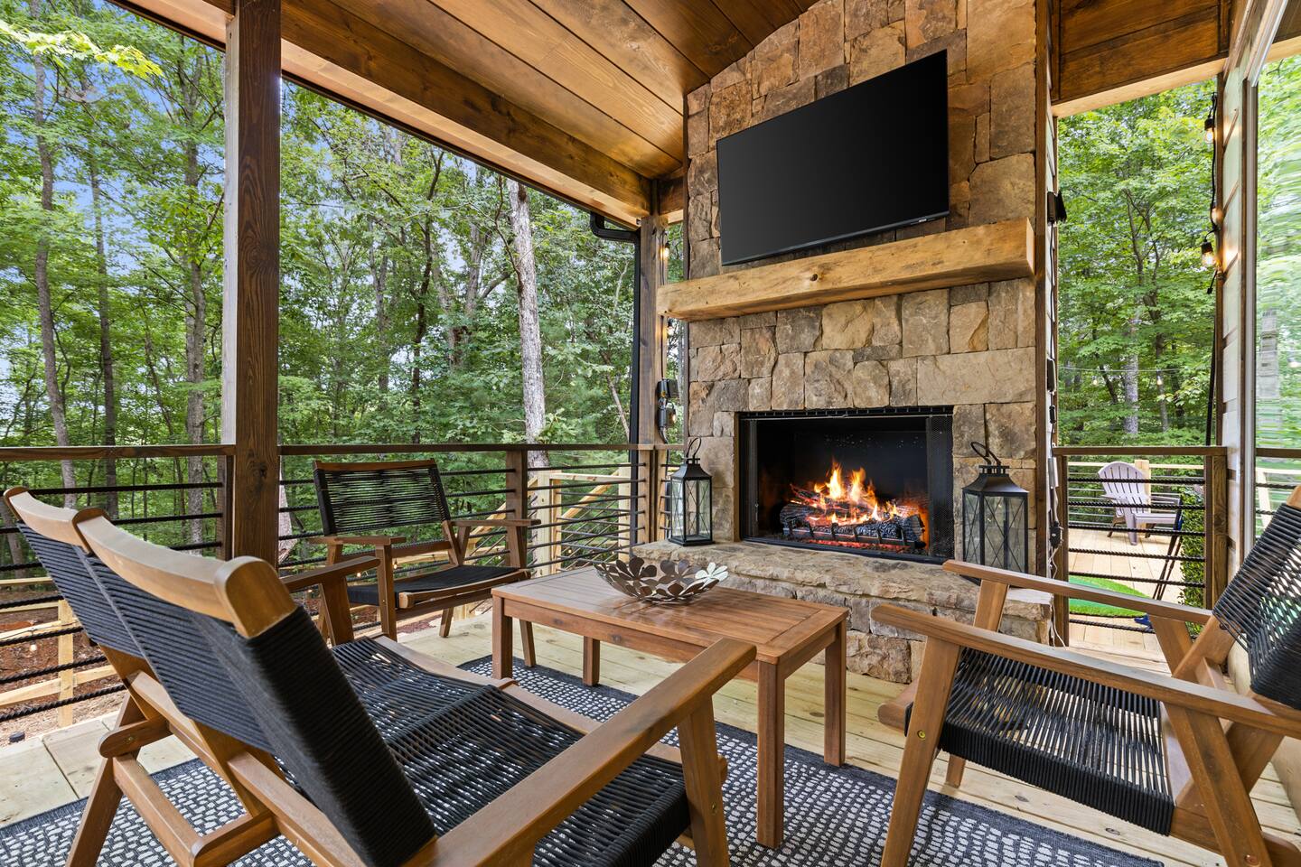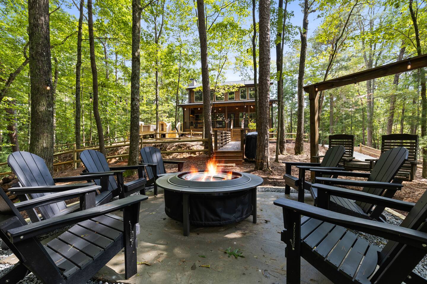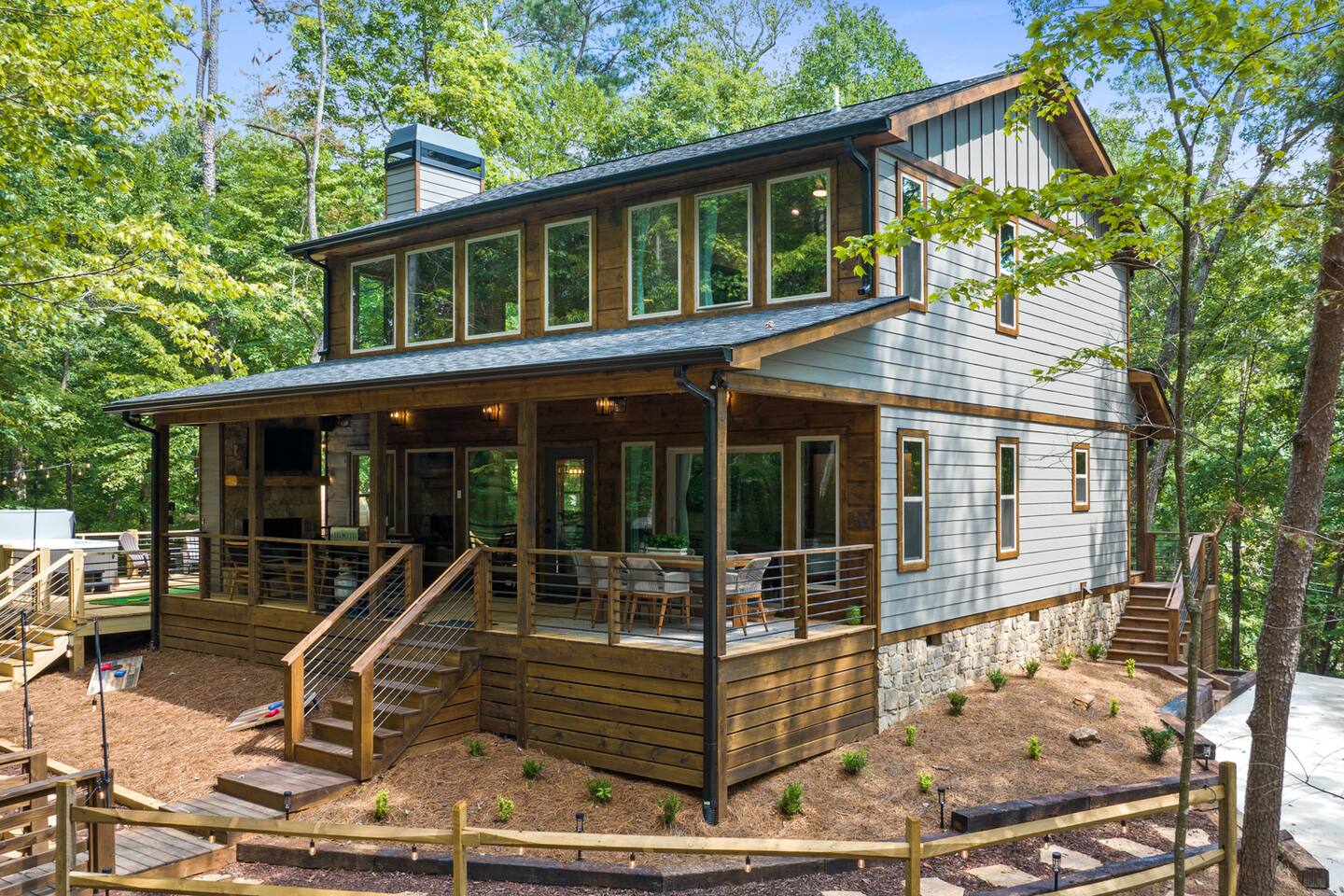 This brand-new luxury mountain retreat features 3 spacious bedrooms and 2.5 bathrooms, with comfortable sleeping arrangements including 2 king beds and 2 custom bunk beds — perfect for families, couples, or groups. Step outside to a thoughtfully designed high-end outdoor space that lets you enjoy the entire property. Cross the charming walking bridge to the fire pit, or relax on the expansive decks with a 6-person hot tub, barrel sauna, outdoor dining, fireplace lounge, and private putting green. Whether you’re gathering with loved ones or seeking new adventures, Serenity Escape offers the perfect blend of luxury and mountain adventure. Bedrooms - Bedroom 1 (First Floor – King Suite): King bed, private en-suite bathroom, and walk-in closet. Perfect for guests who prefer main-level access. - Bedroom 2 (Second Floor – King Room): King bed, dedicated workspace, walk-in closet, and access to a shared bathroom with a soaking tub and walk-in shower. - Bedroom 3 (Second Floor – Bunk Room): Two custom bunk beds, each with a full bed on the bottom, twin top bunk, and twin trundle — comfortably sleeping up to 6. Includes a cozy reading nook and shares the upstairs bathroom with Bedroom 2. Family-Friendly Amenities For our younger guests, you’ll find a high chair, booster seat, and pack ’n play in the downstairs hallway closet. The home is also equipped with children’s dishware, books, and toys to make family stays easy and fun. Back Porch and Amenities Deck The spacious back porch is the perfect place to relax and gather. Enjoy outdoor dining, fire up the gas grill with a full grilling set, or unwind in the beautiful lounge area in front of the outdoor fireplace with mounted TV — ideal for watching movies or catching the big game. Step onto the amenities deck along the side of the house, designed for both relaxation and fun. Here you’ll find plenty of seating, giant Jenga and Connect 5, plus wellness and entertainment features including a 6-person hot tub, barrel sauna, and private putting green. It’s the ultimate indoor-outdoor retreat for families and friends. Fire Pit Area Cross the charming walking bridge to enter the serene firepit space, designed for relaxation and connection. Gather around the large firepit with seating for 8, perfect for roasting marshmallows or enjoying conversations under the stars. On each side of the firepit, you’ll also find two wooden double-seat swings — a cozy spot to sway and soak in the mountain atmosphere. Location Serenity Escape is ideally located just 10 minutes from downtown Ellijay and 25 minutes from downtown Blue Ridge, giving you easy access to restaurants, wineries, apple orchards, hiking, horseback riding, and more. The cabin is nestled inside the gated Coosawattee River Resort, where guests enjoy complimentary access to resort-style amenities, including: - Tennis & pickleball courts - Indoor and outdoor swimming pools - Mini golf & arcade room - Fitness center - Fishing ponds & river access Whether you’re looking for outdoor adventure, family fun, or a relaxing wine country escape, this location puts it all within reach. Entertainment & TVs All TVs in the cabin are smart TVs with free access to movies, news, sports, and entertainment through Samsung TV Plus. Guests can also log in to their own streaming accounts such as Netflix, Hulu, Prime Video, Disney+, and more. Check out the house welcome book on the entry way piece to learn more about our property and local recommendations!