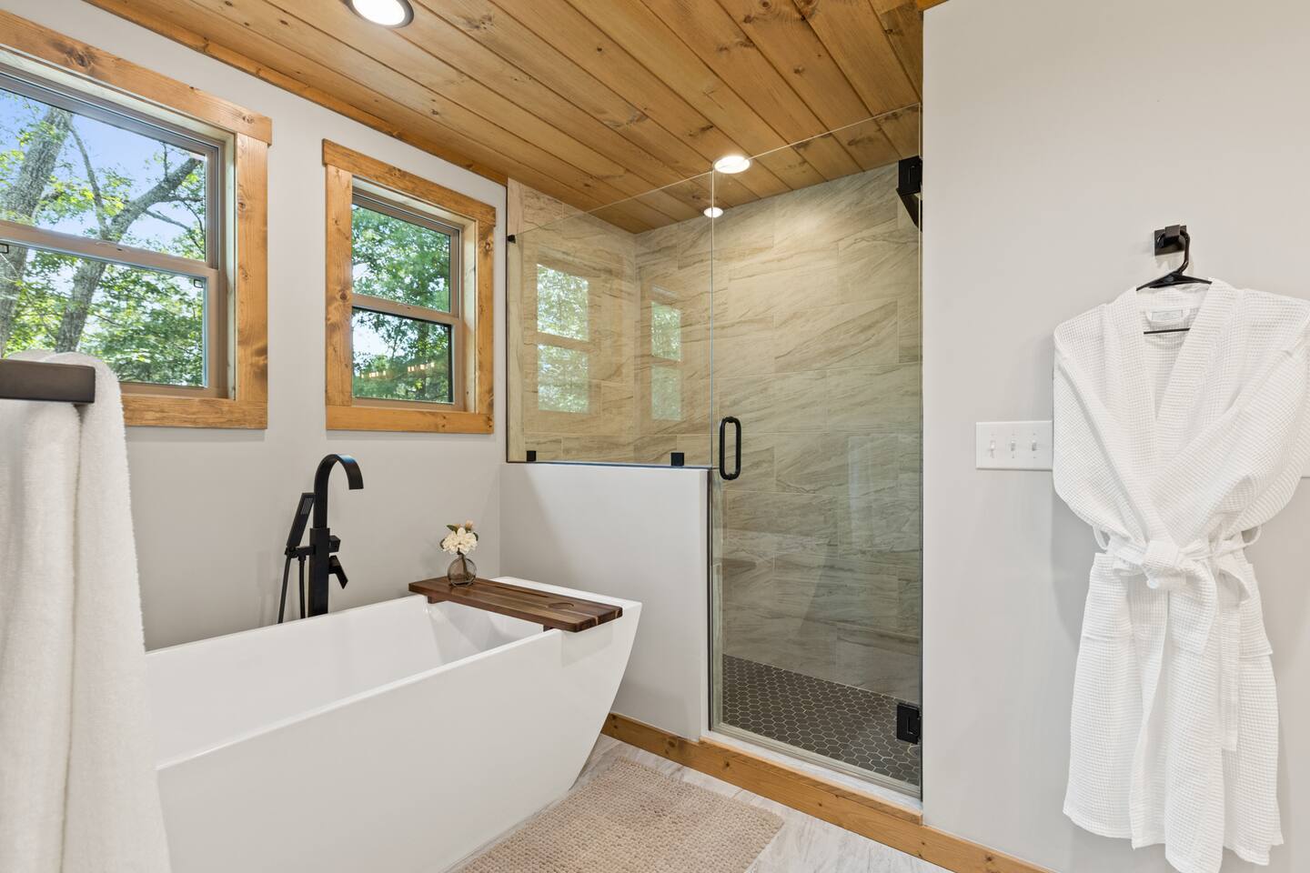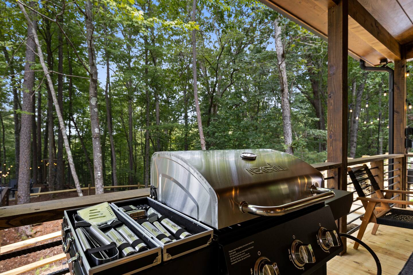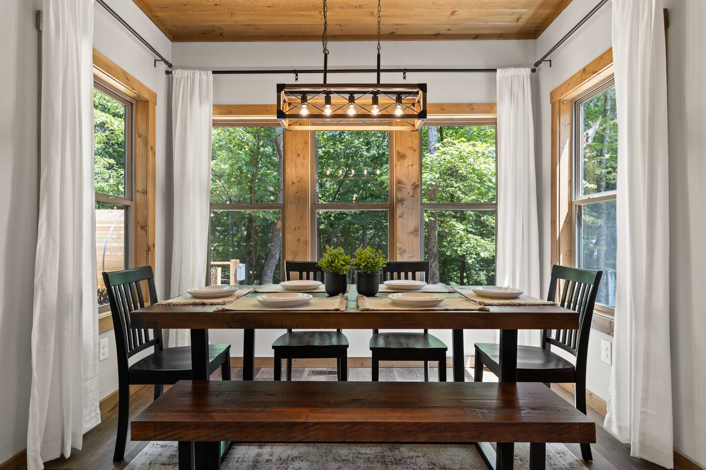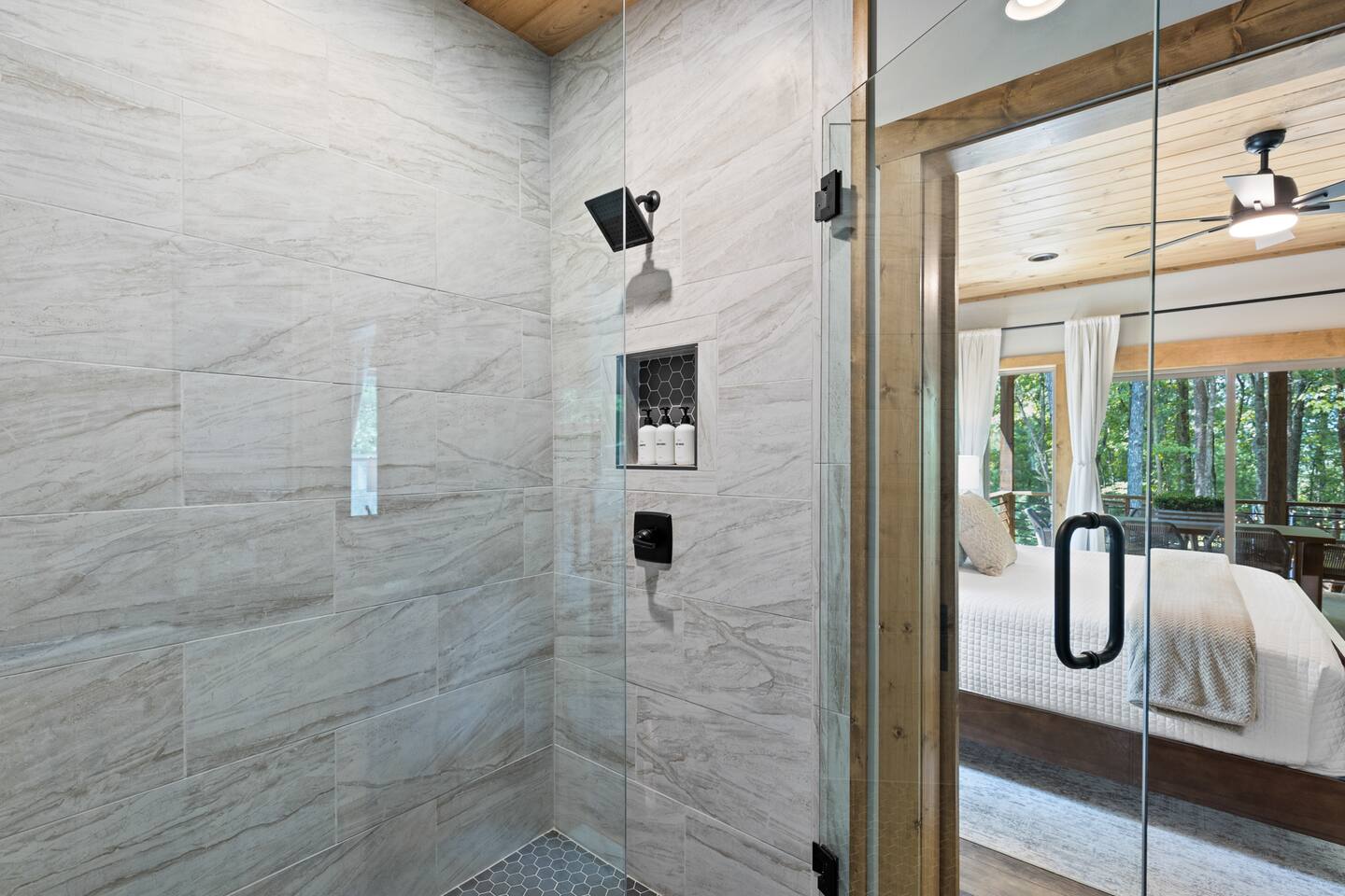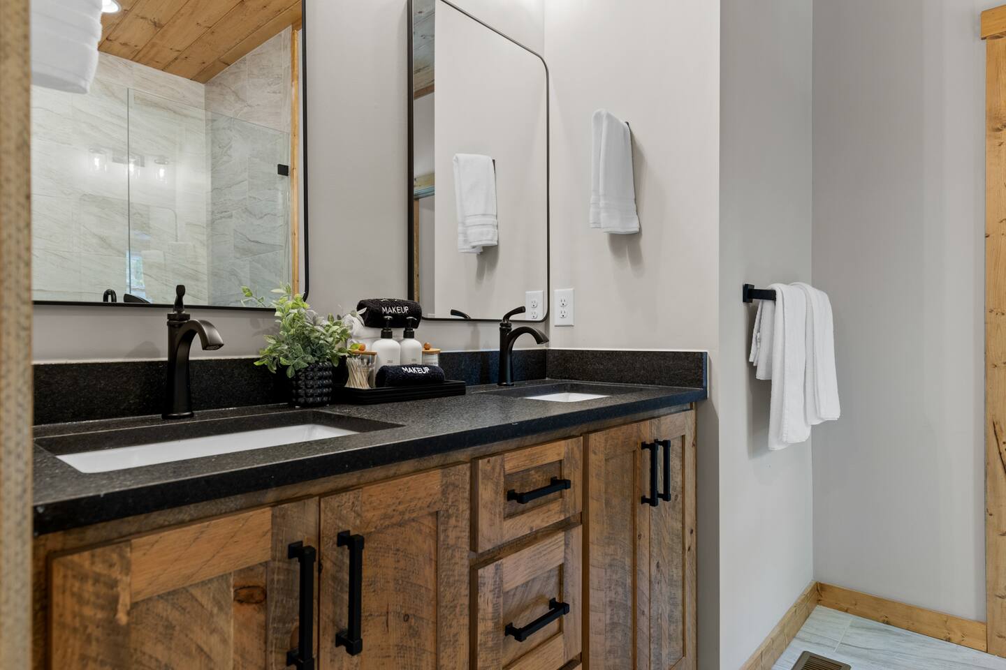 This brand-new luxury mountain retreat features 3 spacious bedrooms and 2.5 bathrooms, with comfortable sleeping arrangements including 2 king beds and 2 custom bunk beds — perfect for families, couples, or groups. Step outside to a thoughtfully designed high-end outdoor space that lets you enjoy the entire property. Cross the charming walking bridge to the fire pit, or relax on the expansive decks with a 6-person hot tub, barrel sauna, outdoor dining, fireplace lounge, and private putting green. Whether you’re gathering with loved ones or seeking new adventures, Serenity Escape offers the perfect blend of luxury and mountain adventure. Bedrooms - Bedroom 1 (First Floor – King Suite): King bed, private en-suite bathroom, and walk-in closet. Perfect for guests who prefer main-level access. - Bedroom 2 (Second Floor – King Room): King bed, dedicated workspace, walk-in closet, and access to a shared bathroom with a soaking tub and walk-in shower. - Bedroom 3 (Second Floor – Bunk Room): Two custom bunk beds, each with a full bed on the bottom, twin top bunk, and twin trundle — comfortably sleeping up to 6. Includes a cozy reading nook and shares the upstairs bathroom with Bedroom 2. Family-Friendly Amenities For our younger guests, you’ll find a high chair, booster seat, and pack ’n play in the downstairs hallway closet. The home is also equipped with children’s dishware, books, and toys to make family stays easy and fun. Back Porch and Amenities Deck The spacious back porch is the perfect place to relax and gather. Enjoy outdoor dining, fire up the gas grill with a full grilling set, or unwind in the beautiful lounge area in front of the outdoor fireplace with mounted TV — ideal for watching movies or catching the big game. Step onto the amenities deck along the side of the house, designed for both relaxation and fun. Here you’ll find plenty of seating, giant Jenga and Connect 5, plus wellness and entertainment features including a 6-person hot tub, barrel sauna, and private putting green. It’s the ultimate indoor-outdoor retreat for families and friends. Fire Pit Area Cross the charming walking bridge to enter the serene firepit space, designed for relaxation and connection. Gather around the large firepit with seating for 8, perfect for roasting marshmallows or enjoying conversations under the stars. On each side of the firepit, you’ll also find two wooden double-seat swings — a cozy spot to sway and soak in the mountain atmosphere. Location Serenity Escape is ideally located just 10 minutes from downtown Ellijay and 25 minutes from downtown Blue Ridge, giving you easy access to restaurants, wineries, apple orchards, hiking, horseback riding, and more. The cabin is nestled inside the gated Coosawattee River Resort, where guests enjoy complimentary access to resort-style amenities, including: - Tennis & pickleball courts - Indoor and outdoor swimming pools - Mini golf & arcade room - Fitness center - Fishing ponds & river access Whether you’re looking for outdoor adventure, family fun, or a relaxing wine country escape, this location puts it all within reach. Entertainment & TVs All TVs in the cabin are smart TVs with free access to movies, news, sports, and entertainment through Samsung TV Plus. Guests can also log in to their own streaming accounts such as Netflix, Hulu, Prime Video, Disney+, and more. Check out the house welcome book on the entry way piece to learn more about our property and local recommendations!